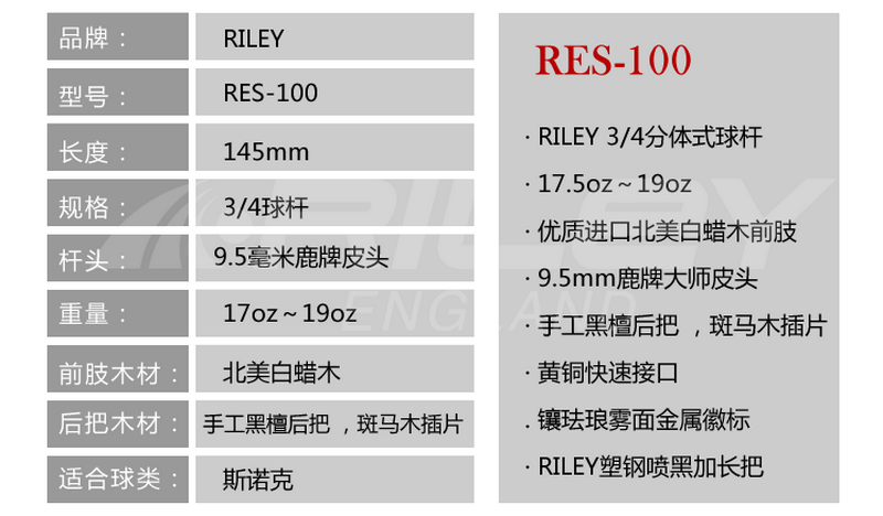 型号:RES-100斯诺克球杆