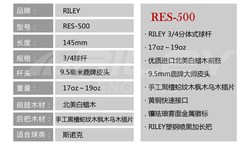 型号:RES-500斯诺克球杆