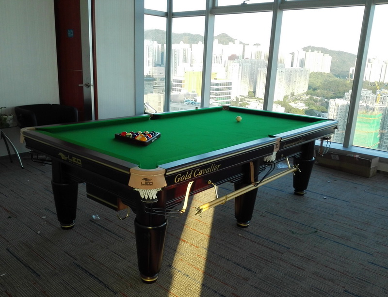 球台配置:进口比利时球、三角架一个、 架杆一支、 球杆架一个、 三头玻璃灯一套、 4支会员球杆、球台盖布、球台毛刷、巧克一盒