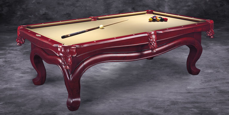 台球桌顶级配置:比利时进口球、拉绣有“力欧”牌美式球台专用台布、三角架一个、 架杆一支、 球杆架一个、无影灯一套、 4支品牌球杆、球台盖布、球台毛刷、巧克一盒